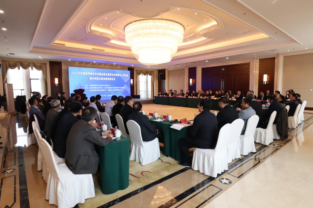 4月9-10日,由中国高等教育学会职业技术教育分会主办、江苏经贸职业技术学院等承办的2021年中国高等教育学会职业技术教育分会理事长工作会议暨本科层次职业教育研讨会在江苏南京召开。中国高等教育学会副秘书长王小梅、全国高职高专校长联席会议主席董刚、职业技术教育分会理事长周建松、江苏省教育厅职业教育处处长徐庆,职业技术教育分会副理事长、监事长、秘书长等共计80余人参加了会议。我校校长高武教授应邀参会。