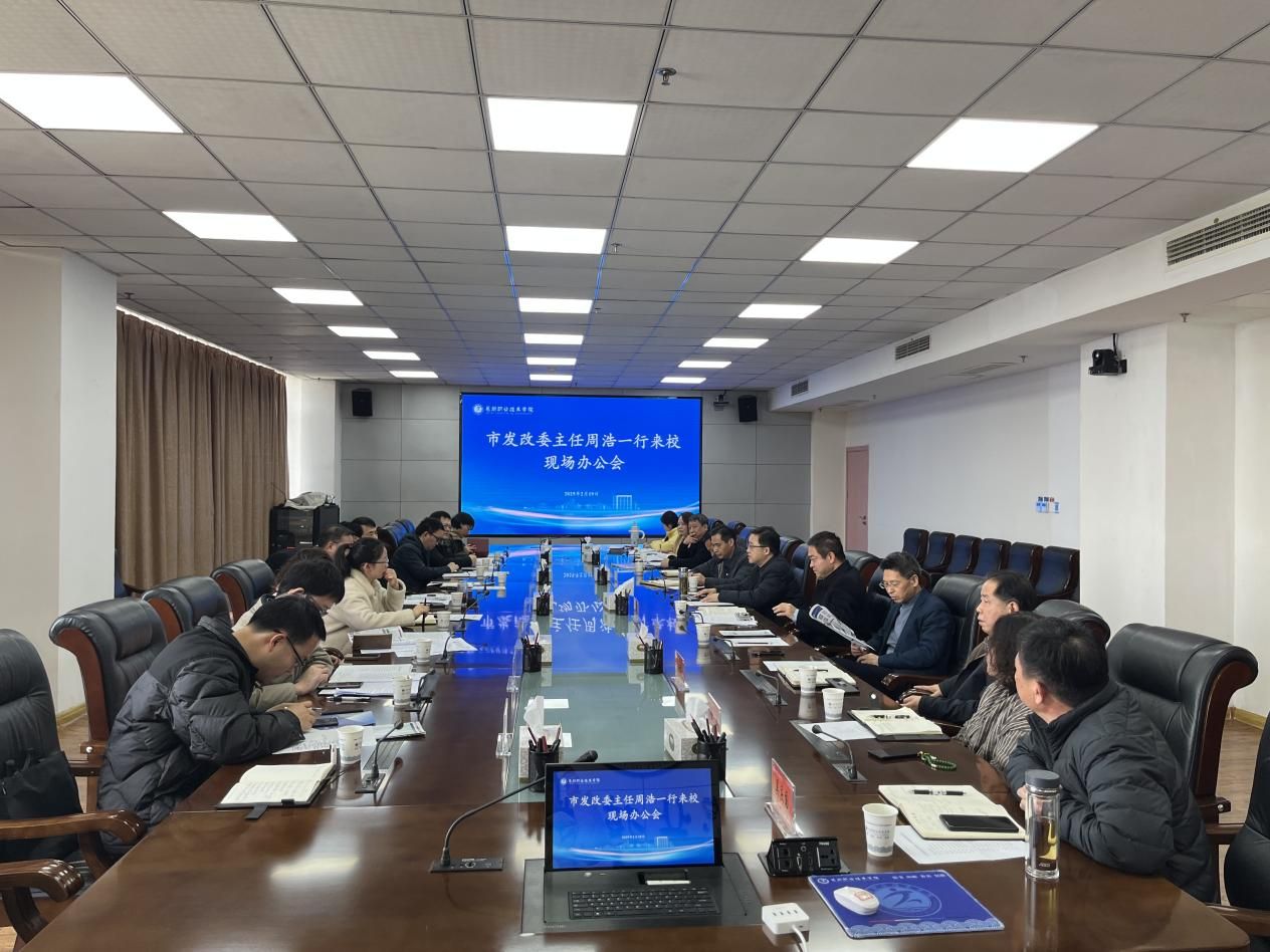 2月19日上午,芜湖市发展和改革委员会主任周浩、副主任徐虎等一行10人来我校开展现场办公。我校党委书记王志鹏,党委委员、副院长季慕寅,党委委员、副院长朱志国,党委委员、纪委书记伍小平率党委(校长)办公室、基建办、发展规划处、财务处、校企合作处、科研处等部门负责人参加。此次调研旨在通过实地考察与交流,进一步了解学校在政策支持、资金保障及项目推进等方面的实际需求,共同探索“两新”项目和产教融合的新路径与解决方案。